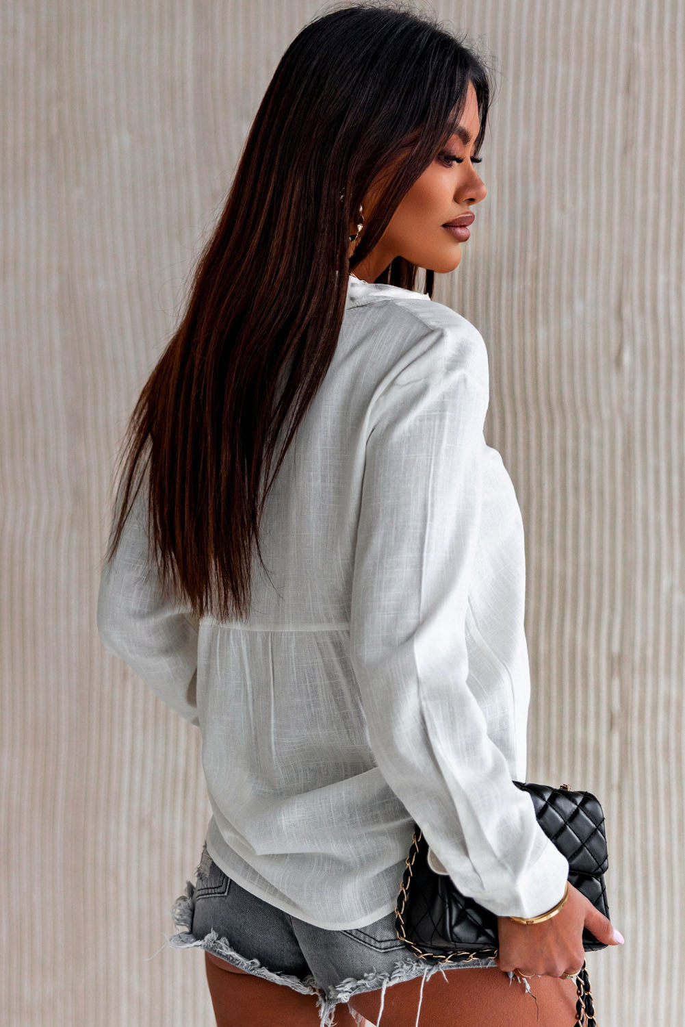 Maintaining the quality of your White Textured Solid Color Basic Shirt is easy. We recommend machine washing in cold water and hanging to dry to preserve the fabric's integrity and texture. Avoid bleach and tumble drying to ensure the longevity of your shirt.