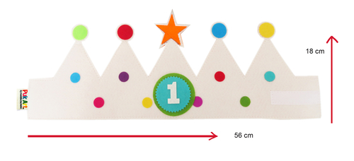 Adjustable crown with 9 separate numbers for your birthday from 1-10 years. Party hat with velcro so you can use the crown from 0 to 10 years old. The 6 is also the 9. Off white crown as a birth gift or birthday hat.
