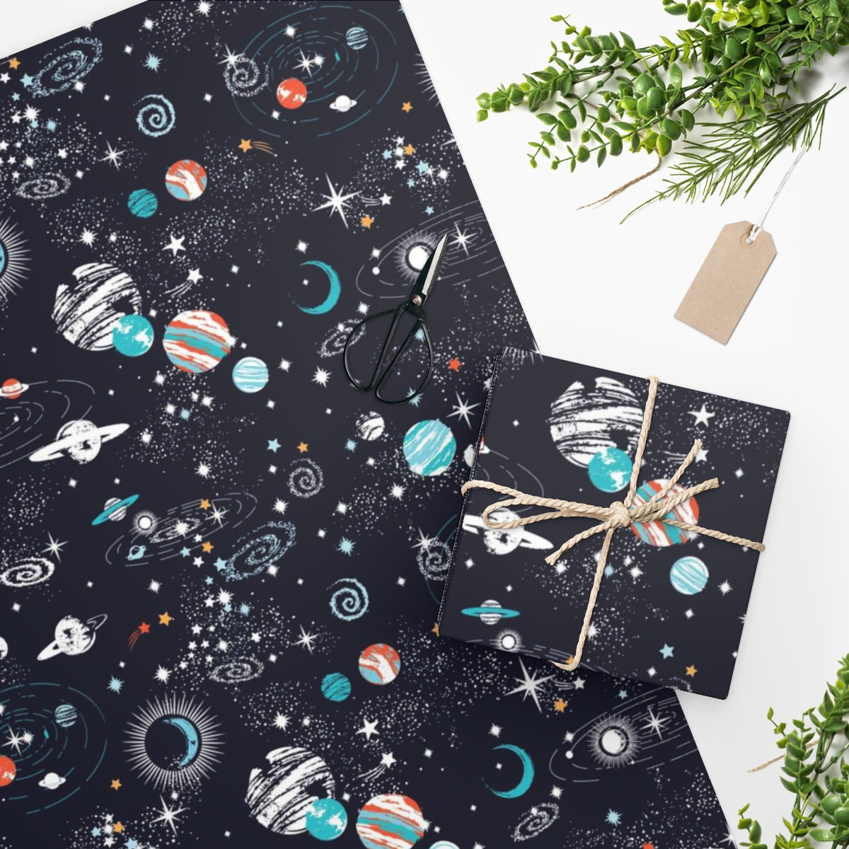 Make your gifts stand out with our stunning Space Wrapping Paper. This unique wrapping paper not only enhances the presentation of your gifts but also adds a touch of creativity and fun to any occasion. Whether you're wrapping a birthday present, a holiday gift, or just a surprise for a loved one, our space-themed design is sure to impress.