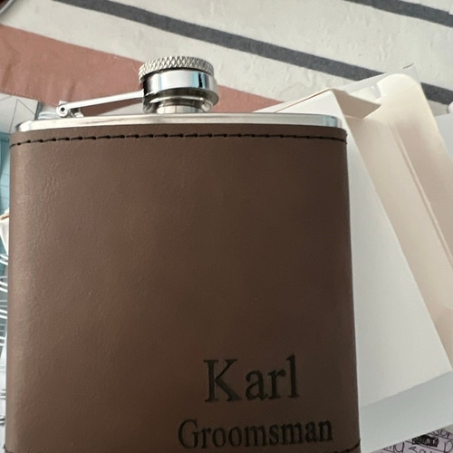 Celebrate those special moments with our Personalized Leather 6OZ Flask, an ideal gift for groomsmen, best men, and bridesmaids. Crafted with high-quality stainless steel and wrapped in luxurious leather, this sleek hip flask combines functionality with style, making it a timeless accessory for any occasion.