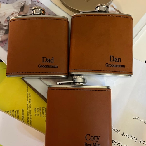 Your wedding is a unique celebration, and your gifts should reflect that. Our Personalized Leather 6OZ Flask is not just a functional item; it’s a cherished memento that will remind your groomsmen of the special day for years to come. Perfect for toasting a new chapter, this flask is sure to be a hit with your wedding party!
