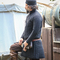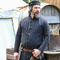A knee-length lightly padded coat with straight quilting. Due to the flat closures, it is best suited as a padding layer under chain mail or a cuirass. The stand-up collar also optimally protects the neck from pressure points. Thanks to its long sleeves, you can pair it with either a long-sleeved chainmail or one with short sleeves and bracers. The sleeves are set relatively far inside at the front, which makes them particularly flexible.