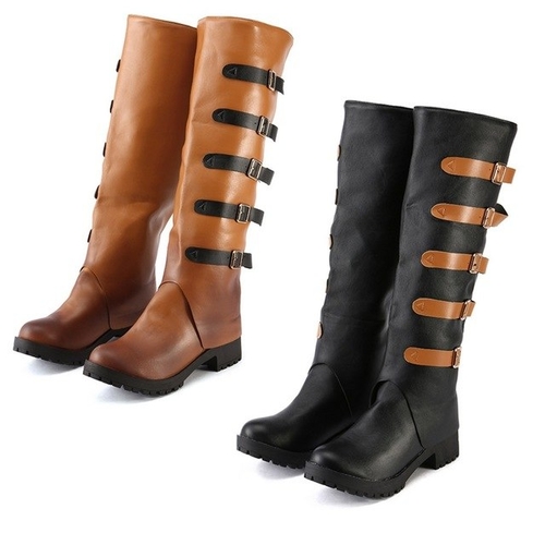 Dropship Fashion Boots Leather Vintage Knee Boots Female