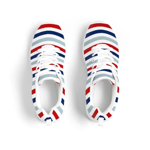 In summary, our Mens Athletic Sneakers in red, white, and blue stripes are not just a footwear choice; they are a statement of style and comfort. With their breathable lining, secure fit, and quality craftsmanship, these sneakers are designed to enhance your athletic performance while keeping you looking great.