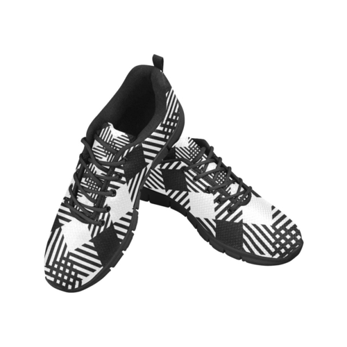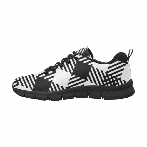 Womens Sneakers - Black and White Plaid Print Running Shoes