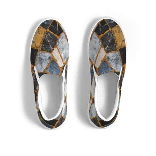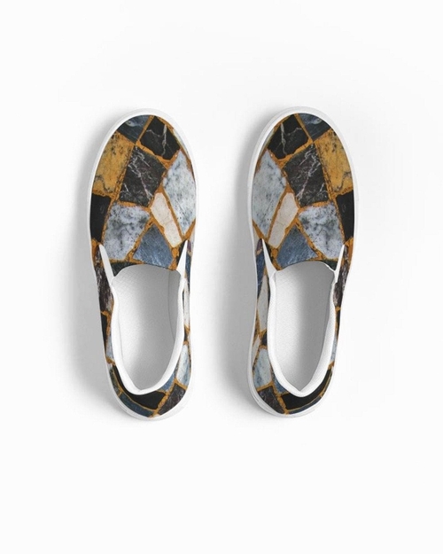 Introducing our Womens Sneakers - Canvas Slip On Shoes in a stunning Black Mosaic Print, designed for the modern woman who values both style and comfort. These versatile shoes are perfect for transitioning from day to night, making them an essential addition to your footwear collection. Whether you're running errands, heading to work, or enjoying a casual outing with friends, these slip-on shoes provide the perfect blend of functionality and fashion.