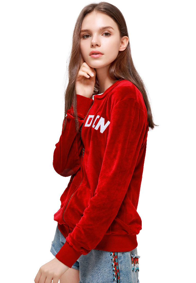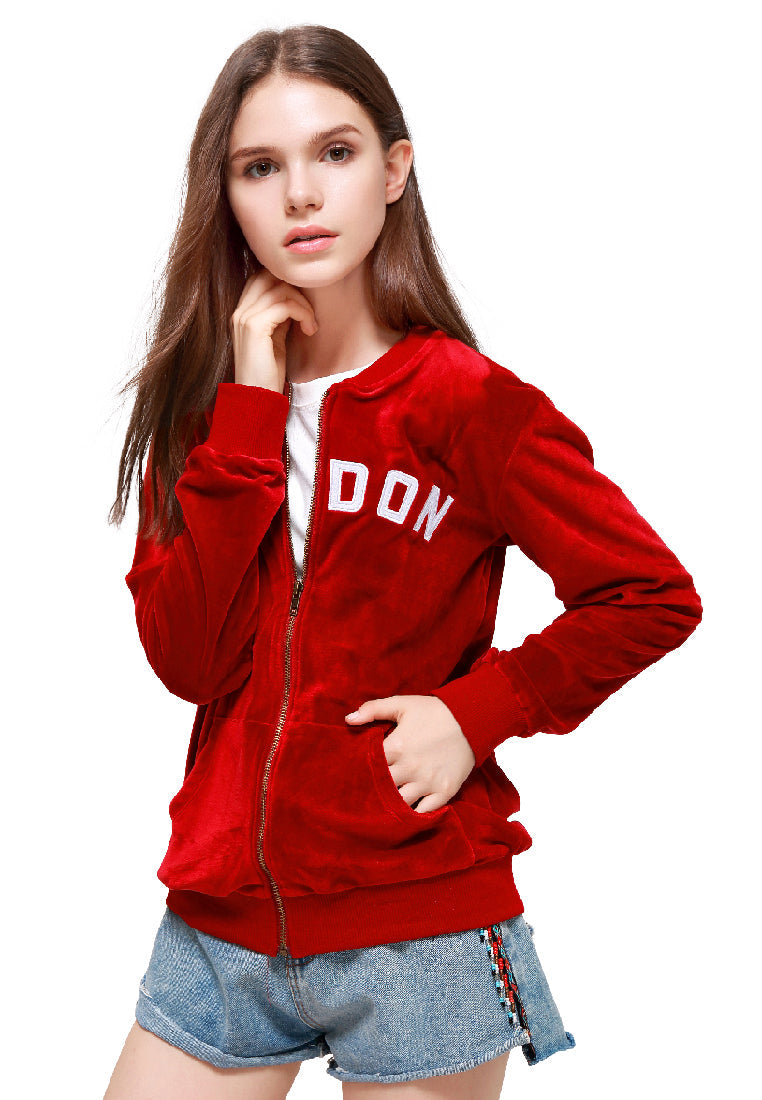 Introducing the Burgundy Velvet Zipper Jacket, a must-have addition to your winter wardrobe. This jacket combines style and comfort, making it perfect for those chilly days when you want to look your best. Made from soft and luxurious velvet fabric, it provides warmth without sacrificing your fashionable edge.