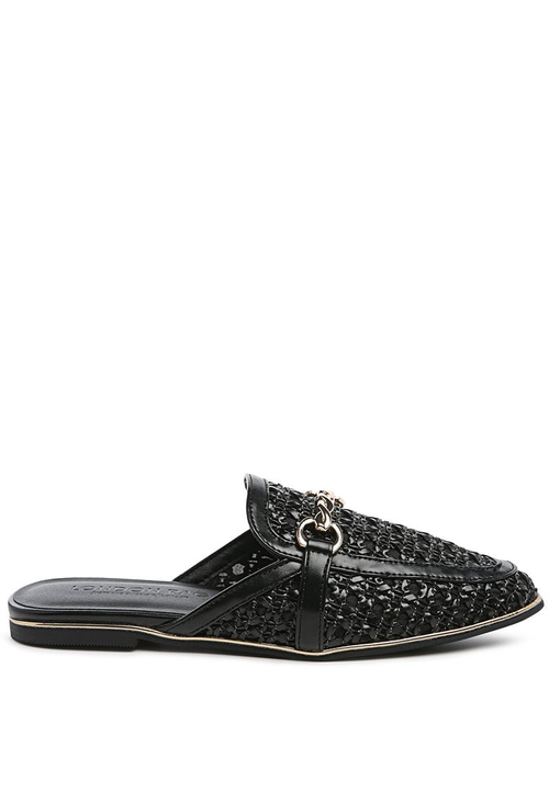 The Ophelia Lattice Edge Woven Flat Mules are the epitome of style and comfort, designed for the modern woman who values both elegance and practicality. These mules feature a solid tone with a round toe, making them a versatile addition to any wardrobe. The decorative strap with metal details adds a touch of sophistication, elevating your look whether you're heading to brunch or a casual evening out.