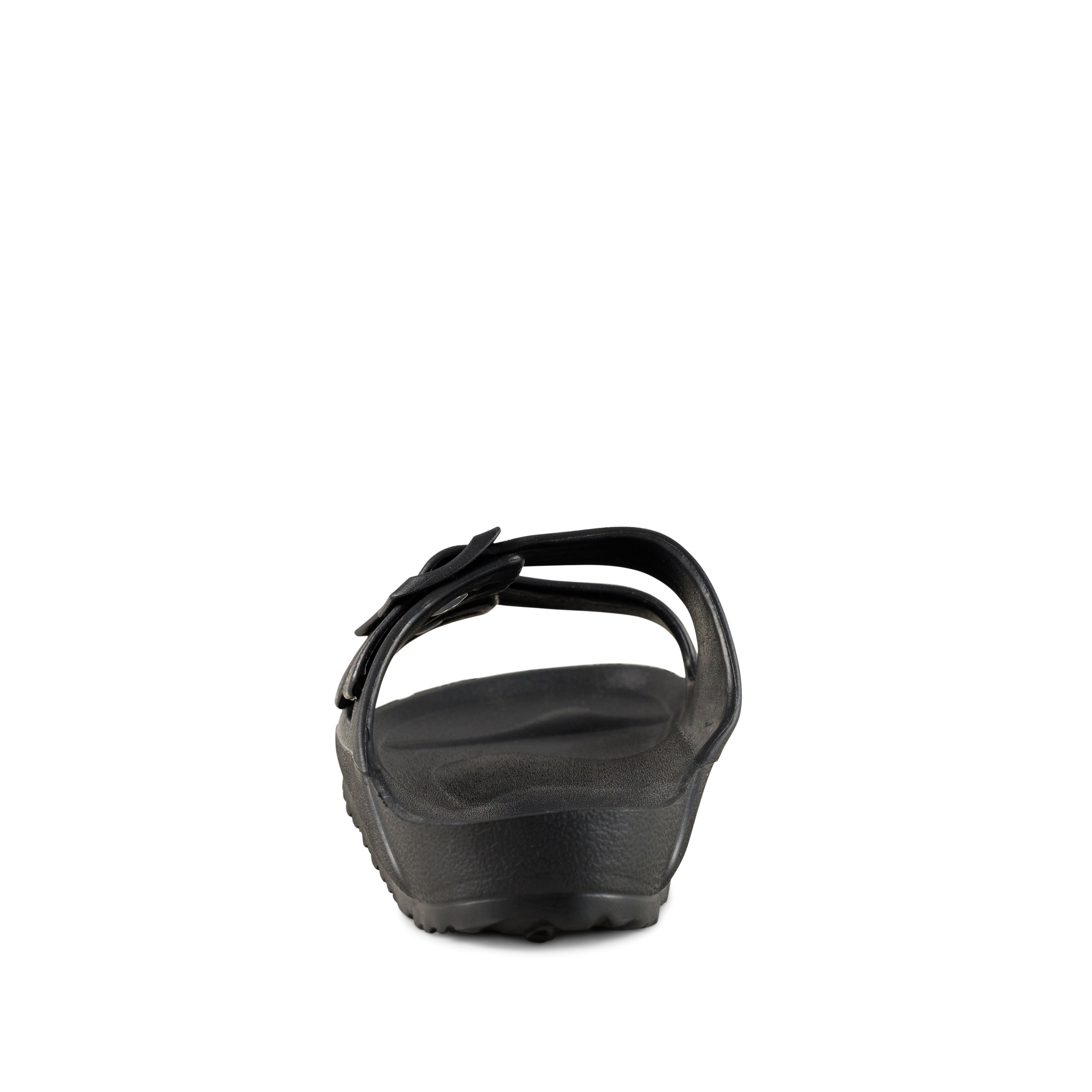 The Women's Sandals Soho Black feature a chic double buckle design that not only looks great but also provides a secure fit. The adjustable plastic closure allows you to customize the fit to your liking, ensuring that your sandals stay comfortably in place as you move. With their sleek black color, these sandals can easily be paired with any summer outfit, from shorts to sundresses.