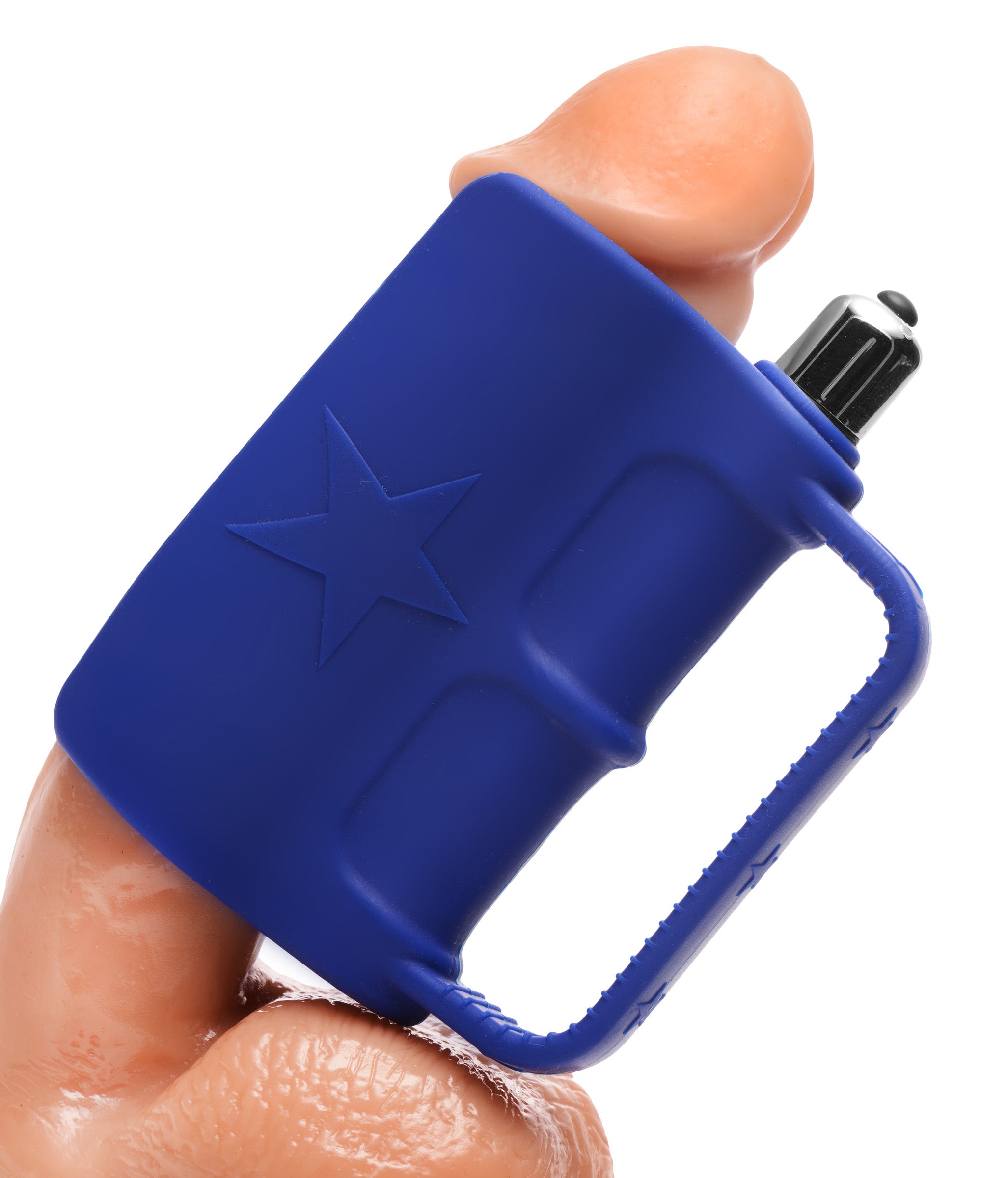 The 5 Knuckle Shuffle Vibrating Silicone Stroker is available in a striking blue color, adding a touch of style to your pleasure products. It requires three LR44 tab batteries, which are included, so you can start enjoying your new stroker right away. With its combination of innovative design, powerful features, and body-safe materials, this stroker is a must-have for anyone looking to enhance their intimate experiences.