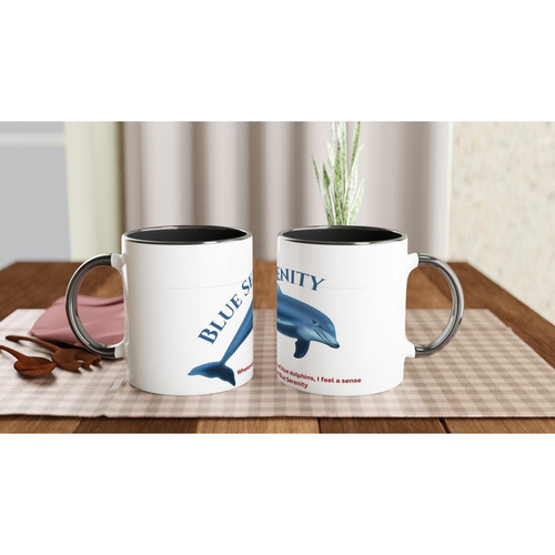 Find tranquility with every sip from our "Blue Serenity" mug. This enchanting 11oz ceramic mug features a graceful dolphin leaping through the waves, evoking a sense of peace and calm.