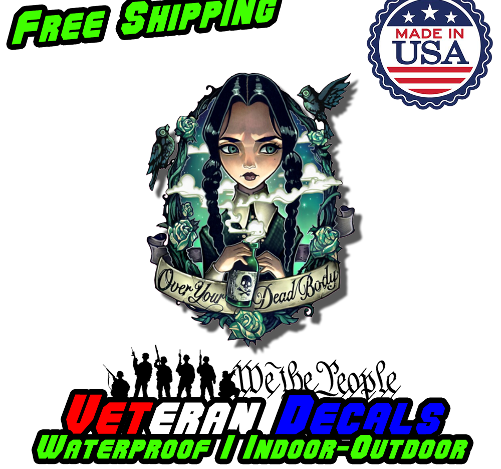 When you purchase the Over Your Dead Body Wednesday Horror Vinyl Decal, you are supporting a small, veteran-owned business. We take pride in creating our products in-house and to order, ensuring that each decal is made with care and attention to detail. Our handling period is typically three days, during which we print, tape, cut, and package your order with the utmost care.