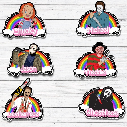 Dropship Rainbow Ghostface- Rainbow Horror Dolls Stickers/Magnet