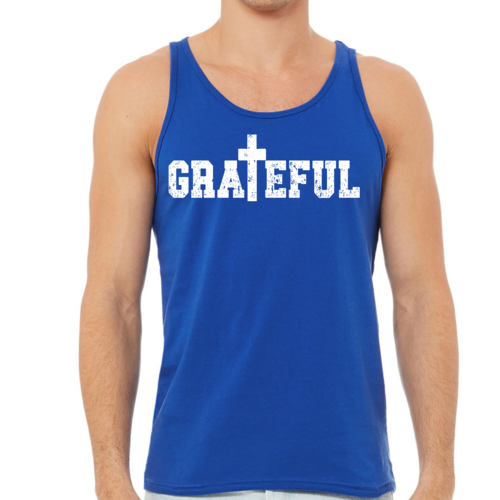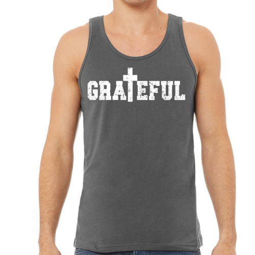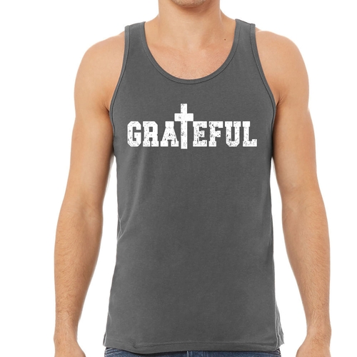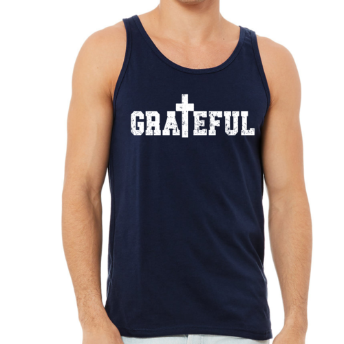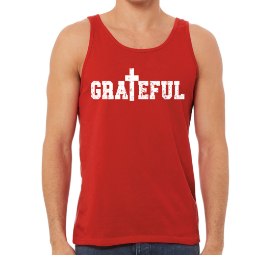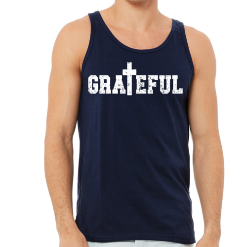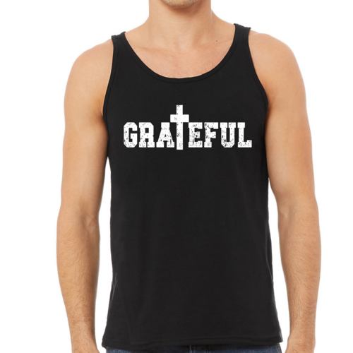 In summary, the Men's Fitness Tank Top with Grateful Print is: - Made from soft, breathable cotton for comfort - Designed with a unisex fit for all body types - Available in a wide range of sizes to suit everyone - Durable with double-stitched seams for long-lasting wear - Features a stylish grateful graphic that motivates and inspires