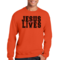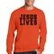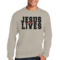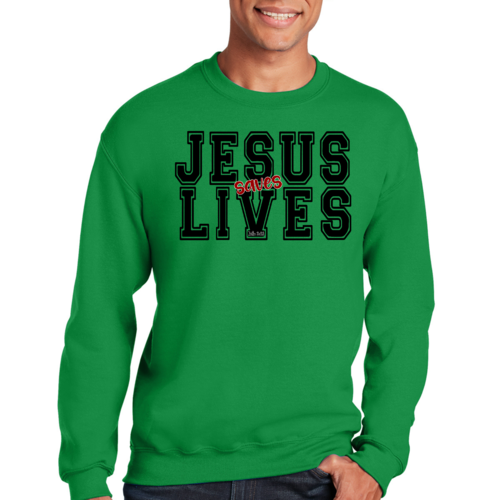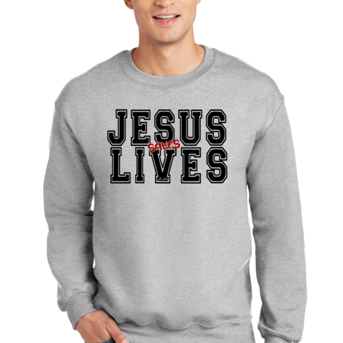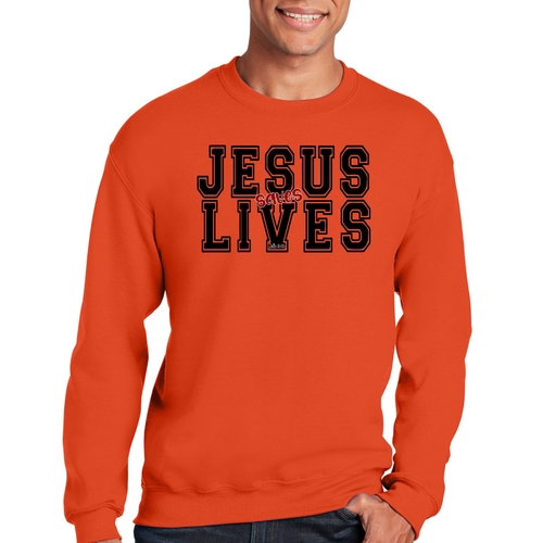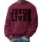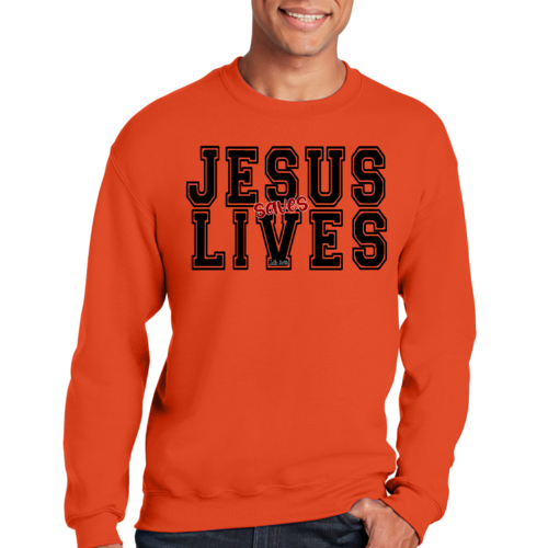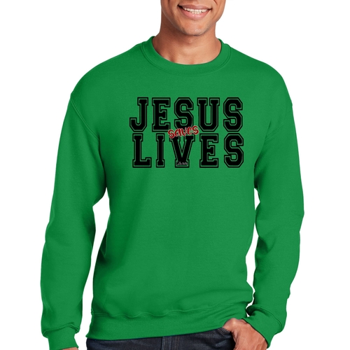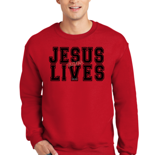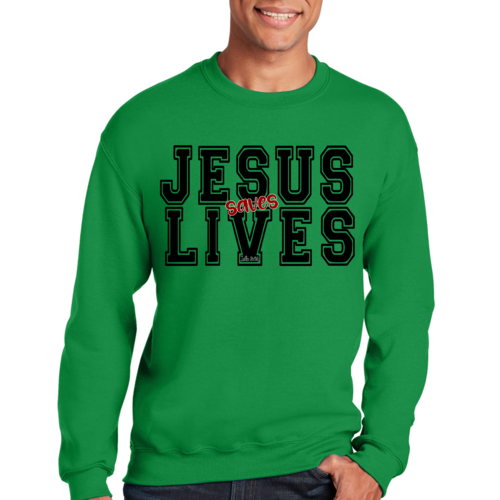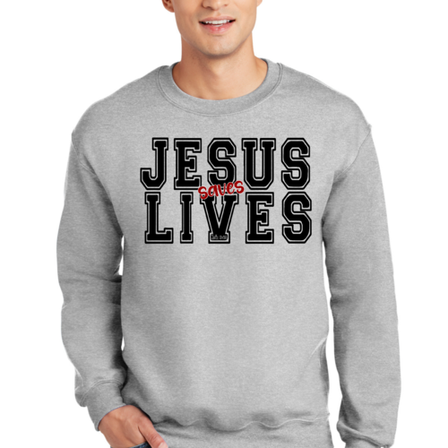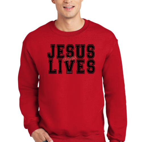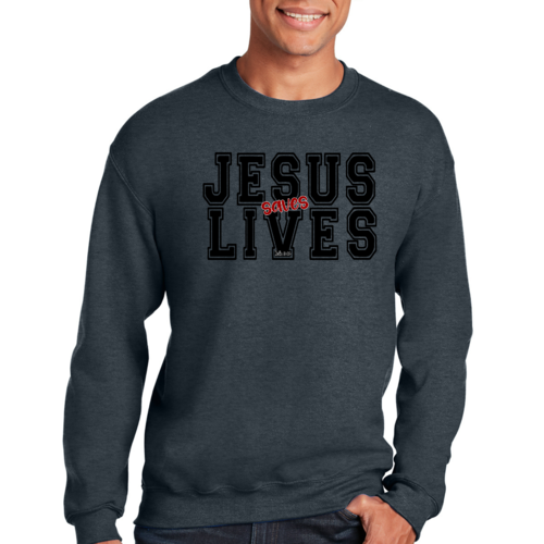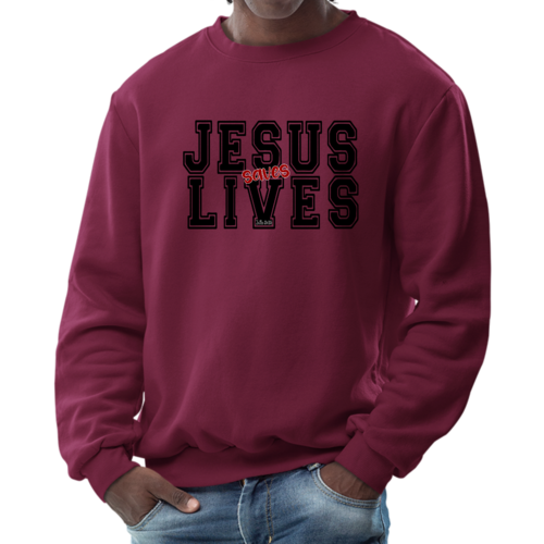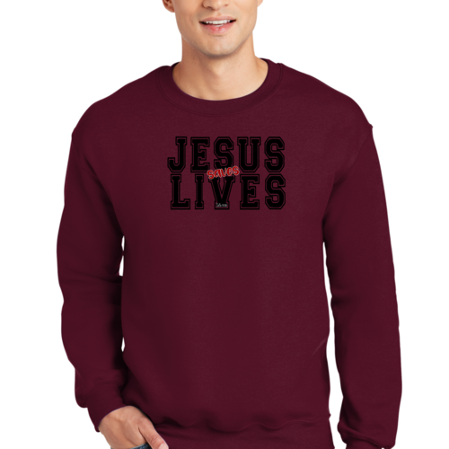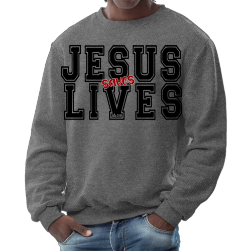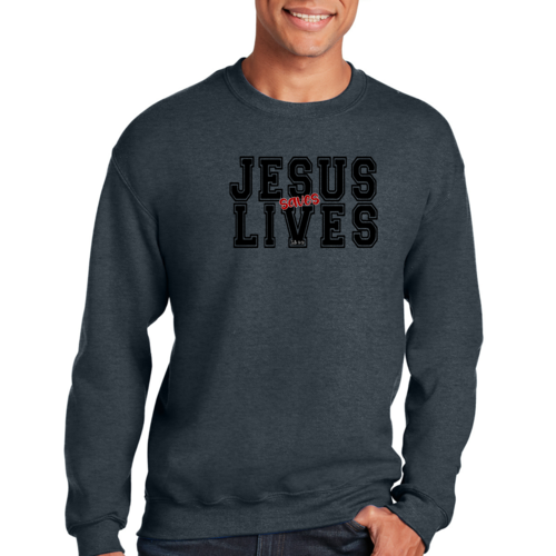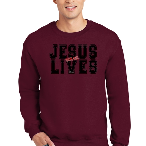 Men's Graphic Sweatshirt in black and red featuring 'Jesus Saves Lives' illustration, showcasing a comfortable and stylish design.