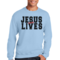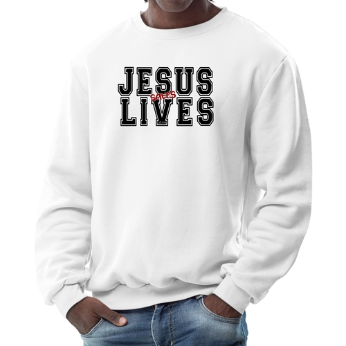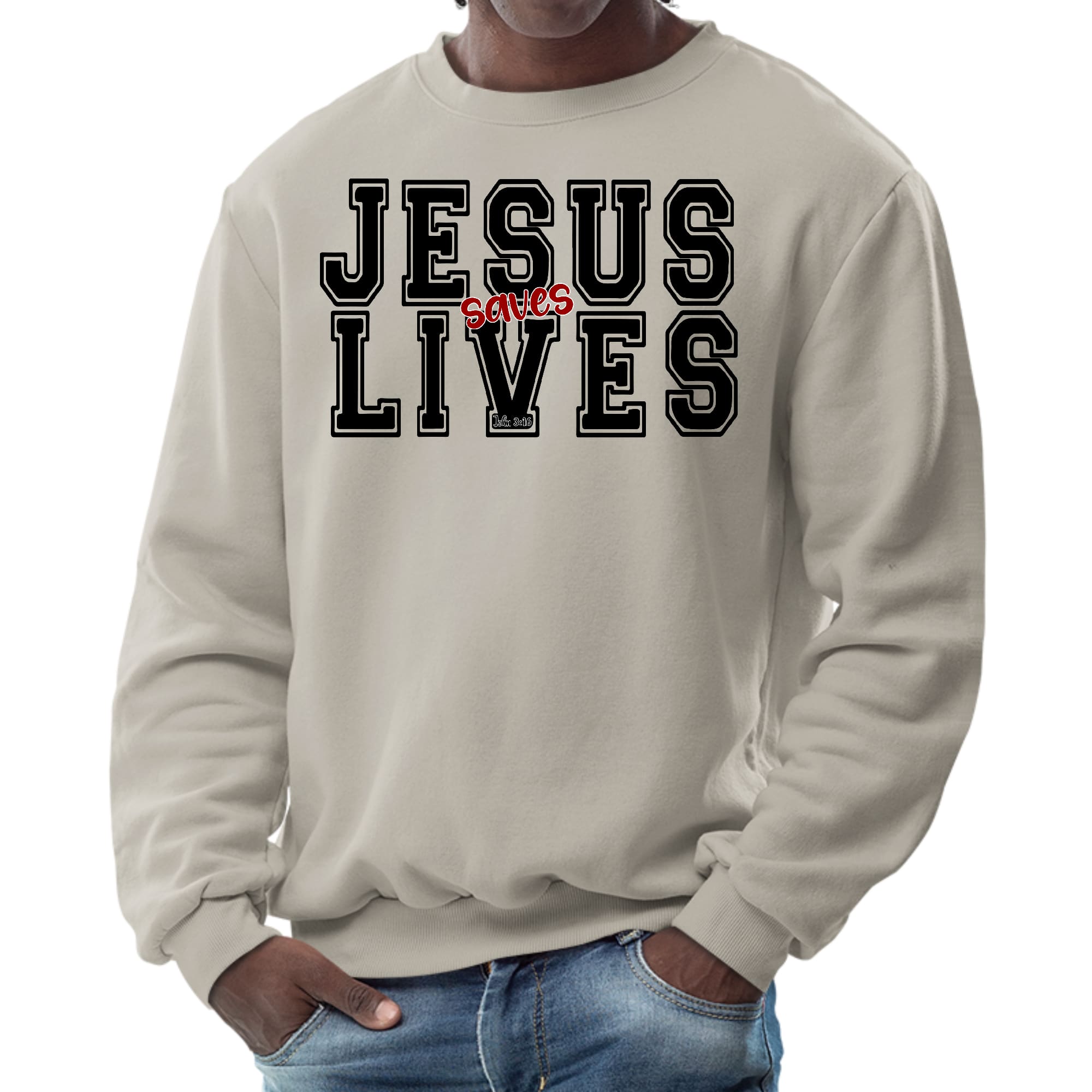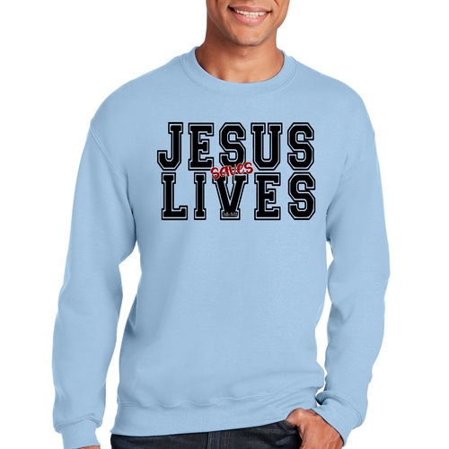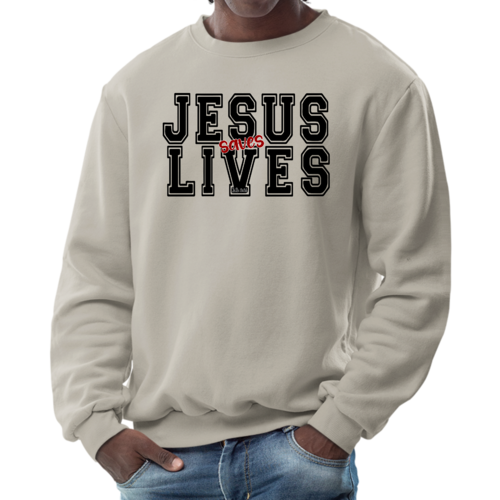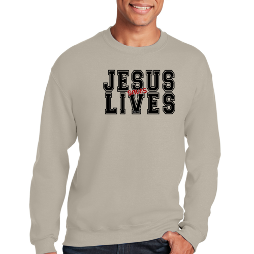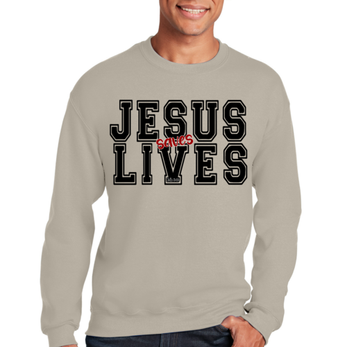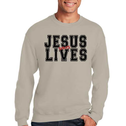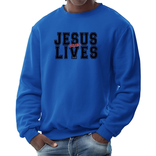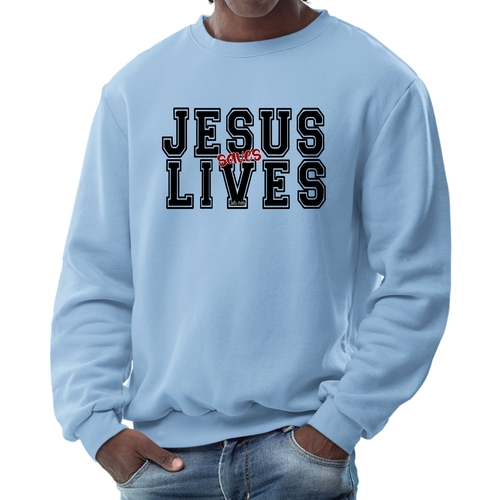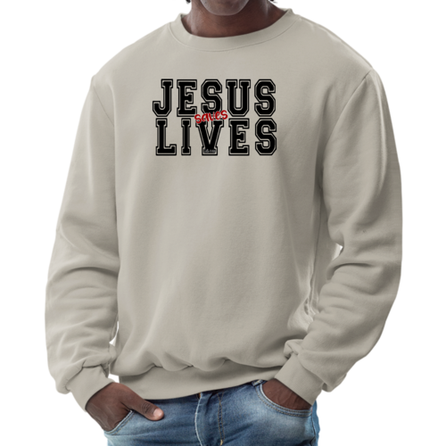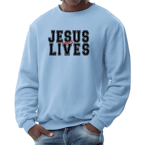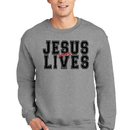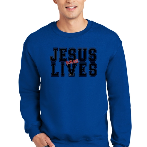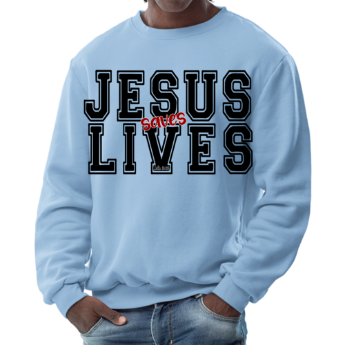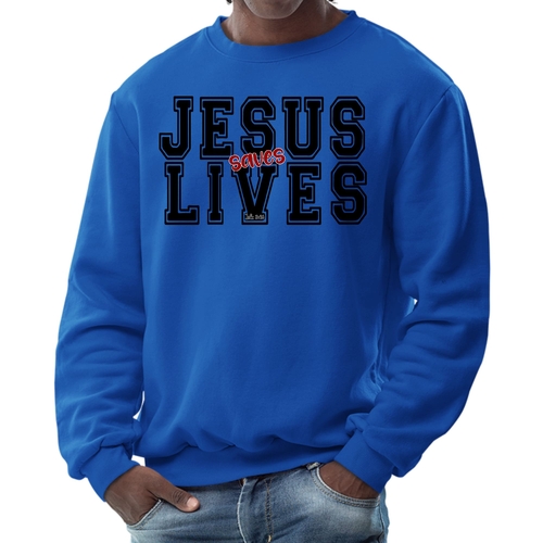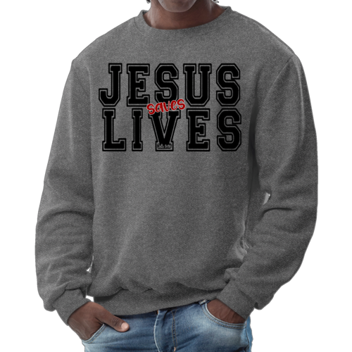 Introducing the Men's Graphic Sweatshirt, a stylish and meaningful addition to your wardrobe. This sweatshirt features a striking 'Jesus Saves Lives' illustration in black and red, making it a perfect choice for those who want to express their faith while staying comfortable. Crafted from a high-quality 50/50 Poly/Cotton blend, this sweatshirt offers the ideal combination of softness and durability, ensuring it will be a staple in your closet for years to come. The fabric is not only soft against the skin but also breathable, making it suitable for various weather conditions. Whether you're lounging at home, heading out for a casual outing, or attending a church event, this sweatshirt provides the comfort you need without sacrificing style.