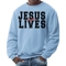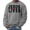 In addition to its practical features, the Men's Graphic Sweatshirt serves as a conversation starter. The bold 'Jesus Saves Lives' graphic resonates with many, making it a perfect piece for those who want to share their beliefs in a stylish way. It can be paired with jeans, shorts, or joggers, making it a versatile option for any casual outfit. Whether you're running errands or enjoying a day out with friends, this sweatshirt will keep you looking fashionable while conveying a powerful message.