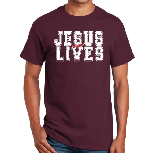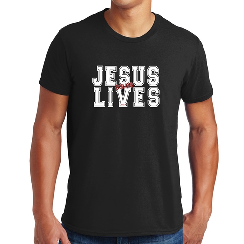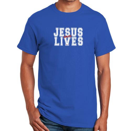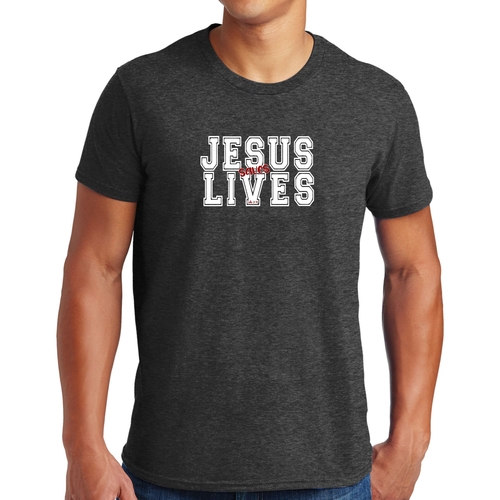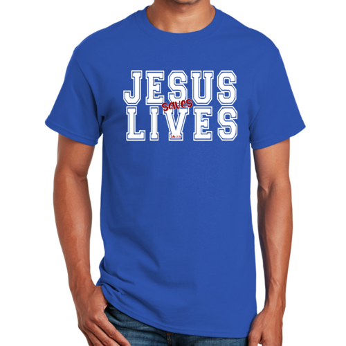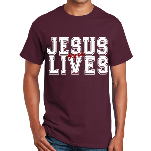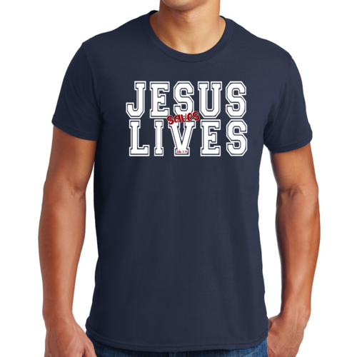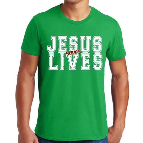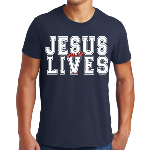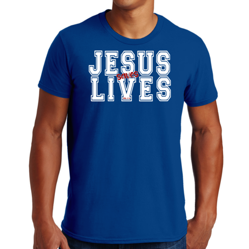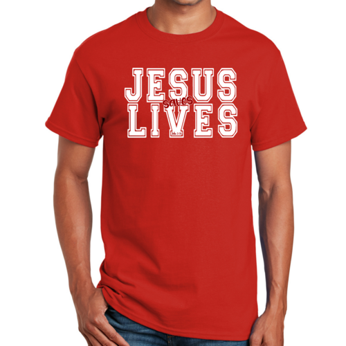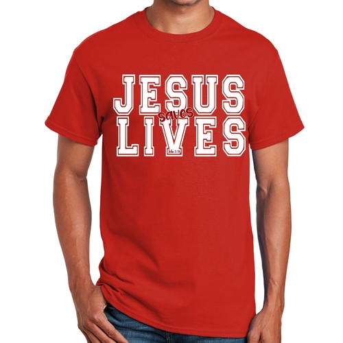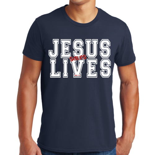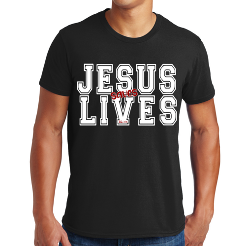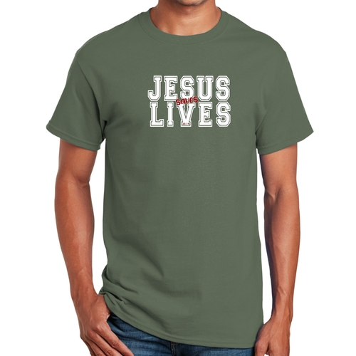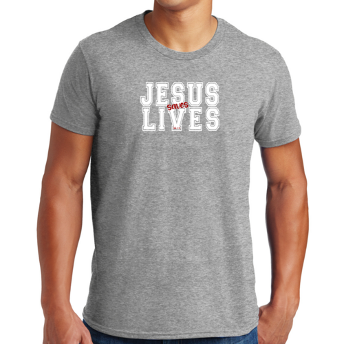 Introducing our Men's Graphic T-shirt featuring the inspiring message 'Jesus Saves Lives' illustrated in a striking white and red design. This t-shirt is not just a piece of clothing; it's a statement of faith and a conversation starter. Made from high-quality cotton, this t-shirt offers unparalleled comfort and durability, making it a must-have addition to your wardrobe.