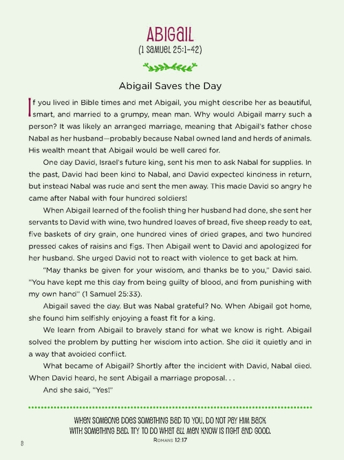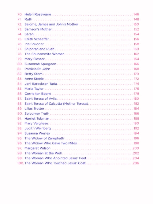 Just for the girls in your life, ages 8 and up, this collection of 100 extraordinary stories of women of faith--from the Bible, history, and today--will empower them to know and understand how women have made a difference in the world and how much smaller our faith (and the biblical record) would be without them. Featuring full-page, colorful illustrations alongside the true stories of amazing women like Lydia, Naomi, Rahab, Rebekah, Jane Austen, Corrie ten Boom, Bethany Hamilton, Rosa Parks, Mother Teresa, and dozens more, the stories of these 100 women will encourage and inspire girls to become the world-changers God created them to be!