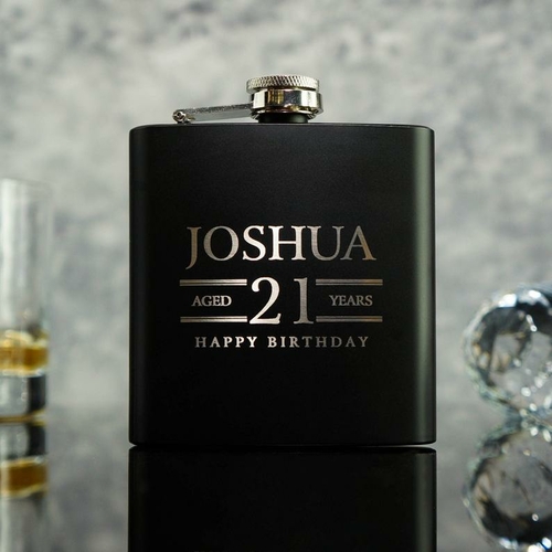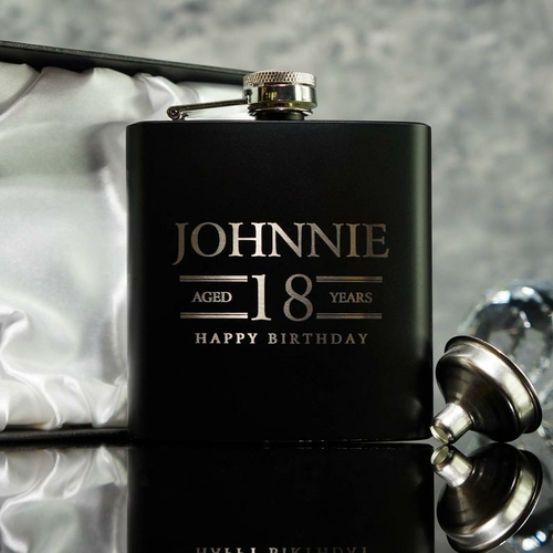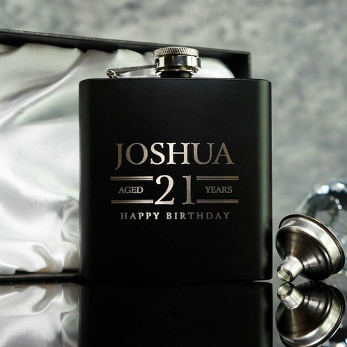 21st or 18th Birthday Gift A Personalised 8oz Matte Black Hip Flask