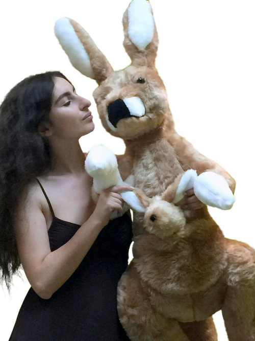 It It is stuffed SQUEEZABLY SOFT, yet has the right amount of firmness to stand tall and proud. It will provide years of huggable squeezable love. You will absolutely LOVE it. The highly detailed head, face and body of both mother and child, makes this oversized plush Kangaroo so amazingly LOVABLE!