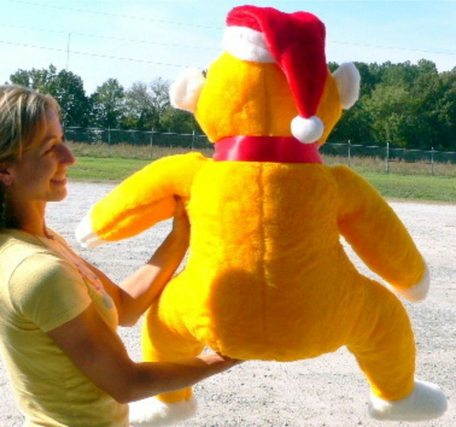 IT MEASURES A WHOPPING 40 inches TALL, from head to foot (That's OVER 3-FEET TALL)! and.. he's FAT and CUDDLY, and has a nice coat of yellow fur!