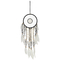 This large dreamcatcher features a cloth-wrapped hoop with a white string web beautifully accented with a crocheted center and beaded ladder detail. Fabric tassels and white feathers finish this Native American-inspired style. Hoop measures approximately 22cm in diameter.