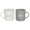 Set of two contemporary mugs that make a great gift for couples for an engagement party or wedding. The mugs come presented in a cardboard box with plastic window and tied with a twine bow. One mug reads 'Bride' and the other 'Groom'. Dimensions: H10cm x W25cm x D9.5cm; Material: Ceramic