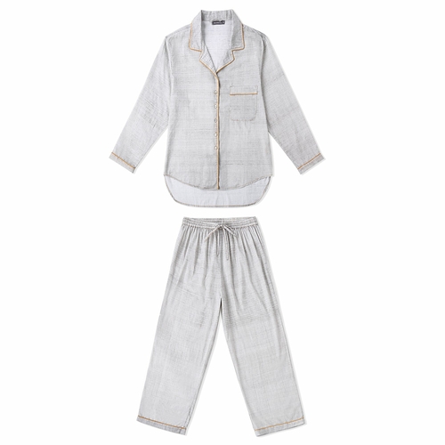 The Children's Loungewear PJ Set features beautiful block-printed designs created using carved wooden stamps. This traditional printing technique ensures that every piece is one-of-a-kind, adding a special touch to your child's loungewear collection. The artistic brushstroke pattern in grey is not only stylish but also versatile, making it easy to mix and match with other outfits.