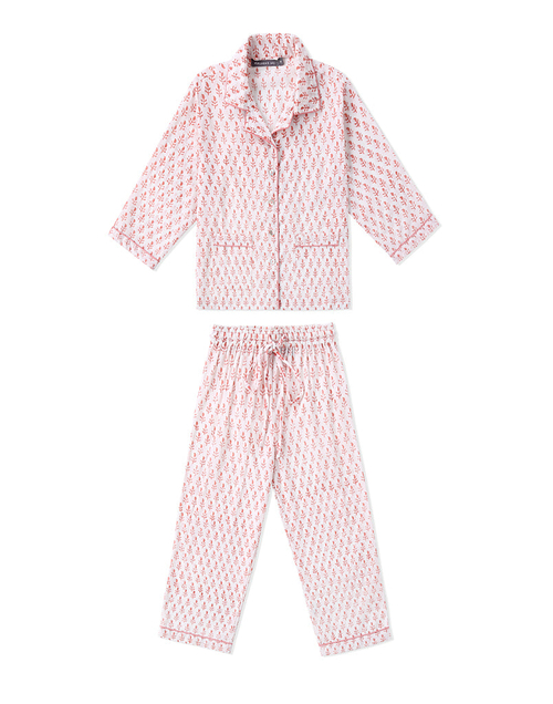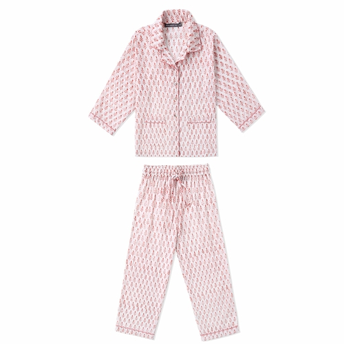 A matching Children's Loungewear Set featuring a top and bottom made from soft cotton voile, beautifully block-printed with unique designs.