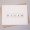 • Flat print on 80lb cover weight, bright white, A2 folded card (4.25" x 5.5") with A2 80lb kraft paper bag pointed flap envelope (4.375" x 5.75") The inside is left blank for your own personal message. Card and envelope are 100% recycled with 30% post-consumer waste. Each card comes individually wrapped in a cello bag. This card is part of our Sentimental Elements collection of cards.