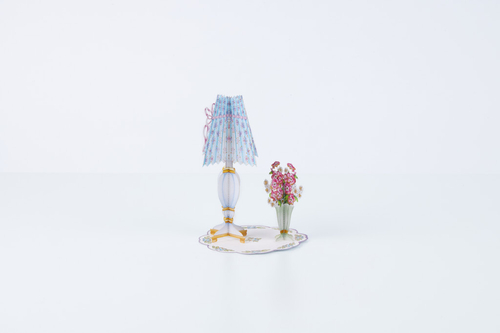 The four wings, with detailed cutouts, folds out to form a cross. In combination with the small vase with flowers, you can place the paper cut on the included base and thus form the card into a beautiful decoration.