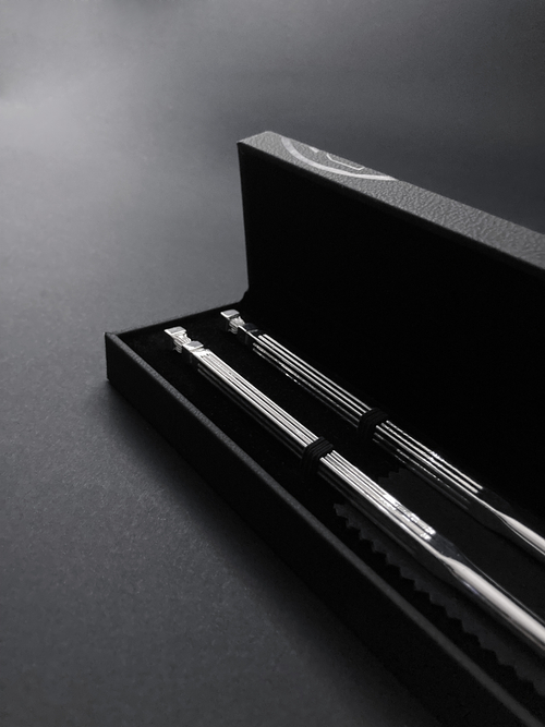 Introducing our Fidelitas series, a pair of meticulously crafted chopsticks that pay homage to the timeless beauty of antique pillars. This series symbolizes the harmonious fusion of tradition and stability, reflecting the union of two souls. Fidelitas, with its classical design, is a perfect choice for any occasion, and it makes for a highly cherished wedding gift.