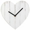 Heart shaped shabby chic clock with a white wood distressed finish. 1 x AA battery required. Dimensions: H20cm x W20cm x D1cm; Material: MDF and Plastic