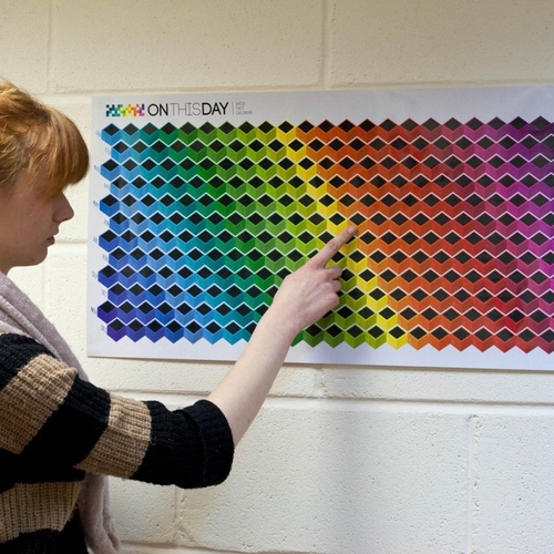 On This Day Calendar, each day is represented by a diamond which is heat sensitive,so when you touch it, the black cover completely disappears and reveal a fact about something historical that happened at that very day. When the residual heat is gone, the diamond will become black again. In addition, there are some space around the black diamonds where you can write down your appointments or diary with a dry erasable marker pen (not included.)
