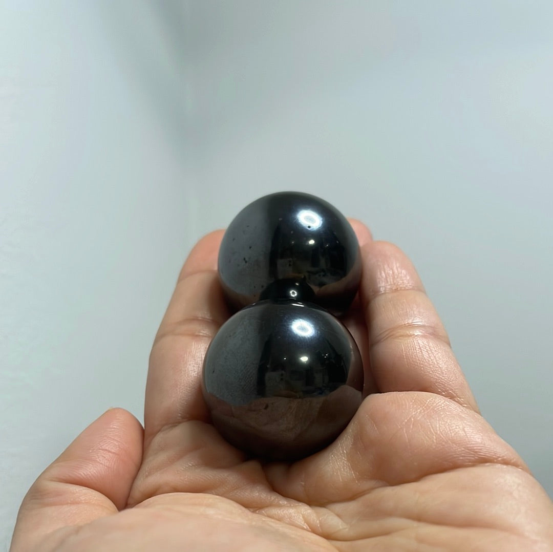 Introducing our premium Hematite Balls, a must-have for anyone interested in holistic healing and meditation practices. These two beautifully crafted balls are made from genuine hematite, known for its unique properties that promote grounding and balance. Whether you are a seasoned practitioner or just starting your journey into the world of energy work, these hematite balls can enhance your experience.