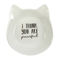 Gorgeous white 'I think you are puuurfect' cat shaped jewellery dish. Great little gift for any cat lover. The text is written in gold. Great for storing all your little bits of jewellery. Part of our exclusive Paws and Claws range. Dimensions: H10cm x W9cm x D2cm; Material: Ceramic
