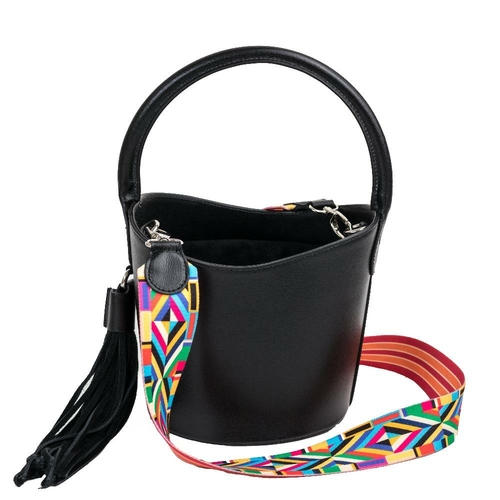 Featuring a solid color that exudes elegance, the Lara Bucket Bag is versatile enough to complement any outfit. The sleek silhouette and clean detailing make it a fashionable choice for various occasions. The detachable multicolour strap adds a playful touch, allowing you to customize your look effortlessly.