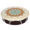 Play a rhythmic beat with this leather and wood shamanic drum with patterned center, ethically sourced and handmade in Bali. 32cm diameter.