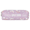 Gorgeous lilac pencil case featuring our own unicorn and rainbow pattern. Text reads 'Crazy Unicorn Lady'. Zip closure.