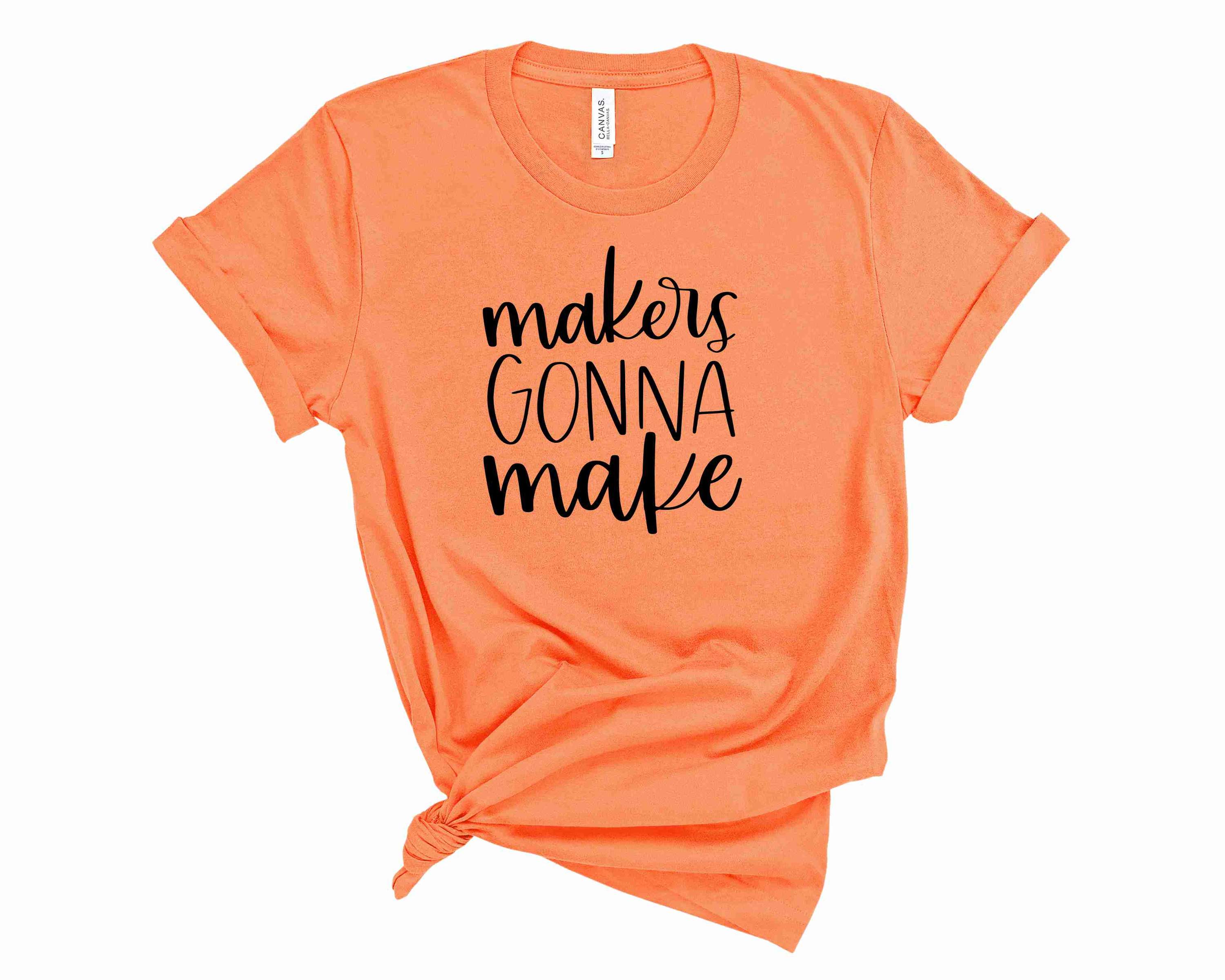 The standout feature of this tee is its eye-catching graphic print that boldly states, 'Makers Gonna Make.' This design is perfect for artists, crafters, and anyone who identifies as a maker. It serves as a reminder to embrace creativity and pursue your passions. The vibrant colors and unique design make it a great conversation starter and a stylish addition to any outfit.