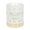 Pretty white ceramic oil burner with a matte finish with cut-out butterfly detail so that when a tealight is lit and placed within it lights up the pattern. Use with fragrance oil or wax melts