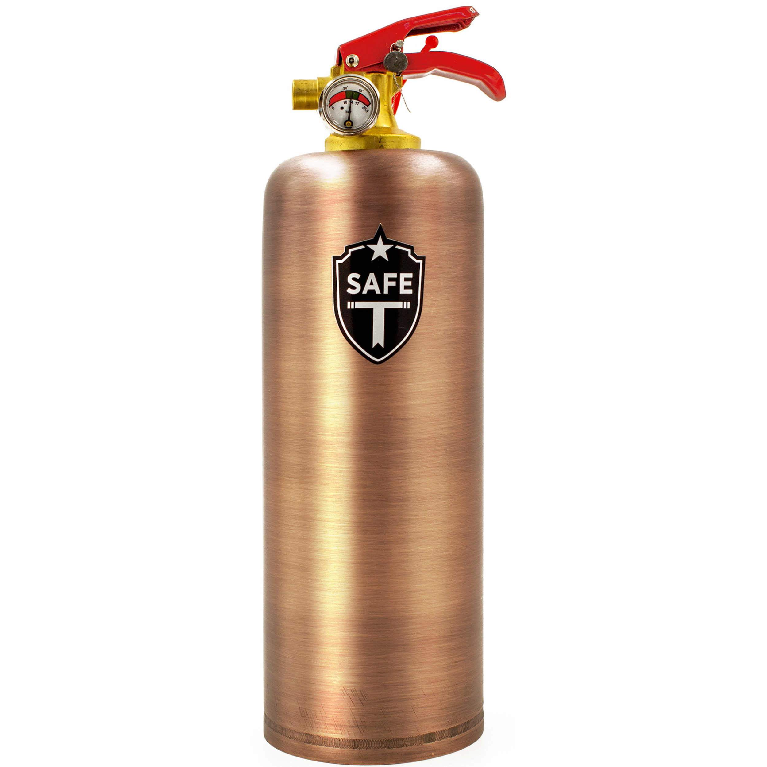 Safe-T Old Copper fire extinguisher with a handcrafted copper finish, showcasing its elegant design and functional beauty.