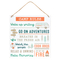 This MDF hanging sign will set the ground rules for a relaxing camping trip. Features text that reads, 'Camp Rules: Wake up smiling, Go on an Adventure, Breathe in the Fresh Air, Watch the Sunset, Cook BBQs, Relax & Unwind, Sit by the Fire and Make Memories'. Comes on a rope for easy hanging.