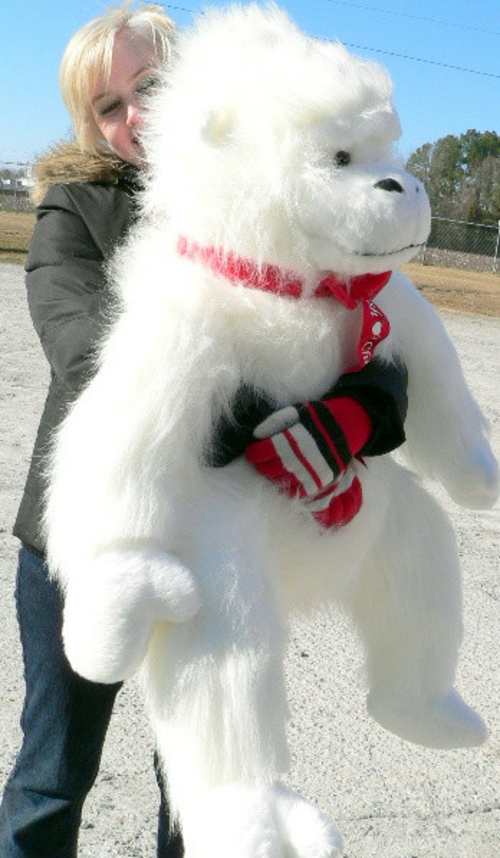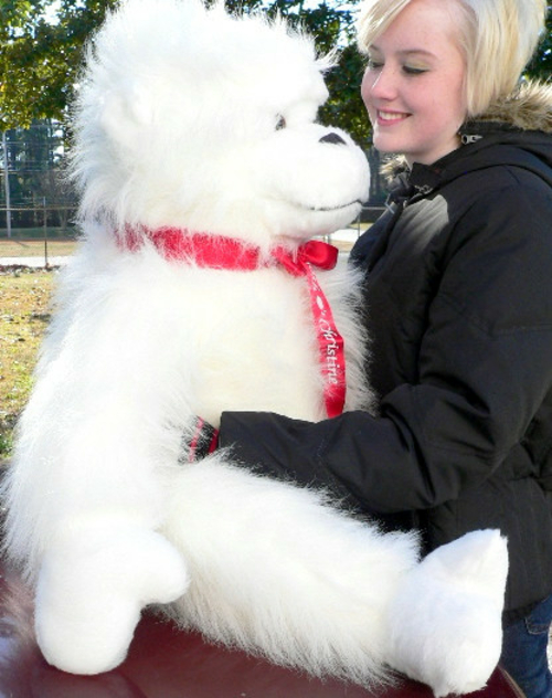 This white fluffy stuffed gorilla / monkey is both huge and adorable.