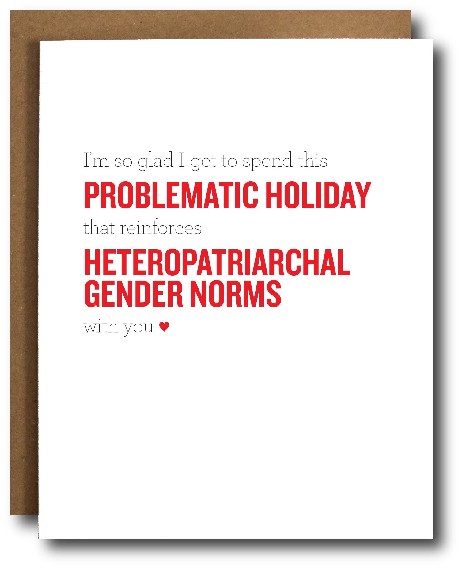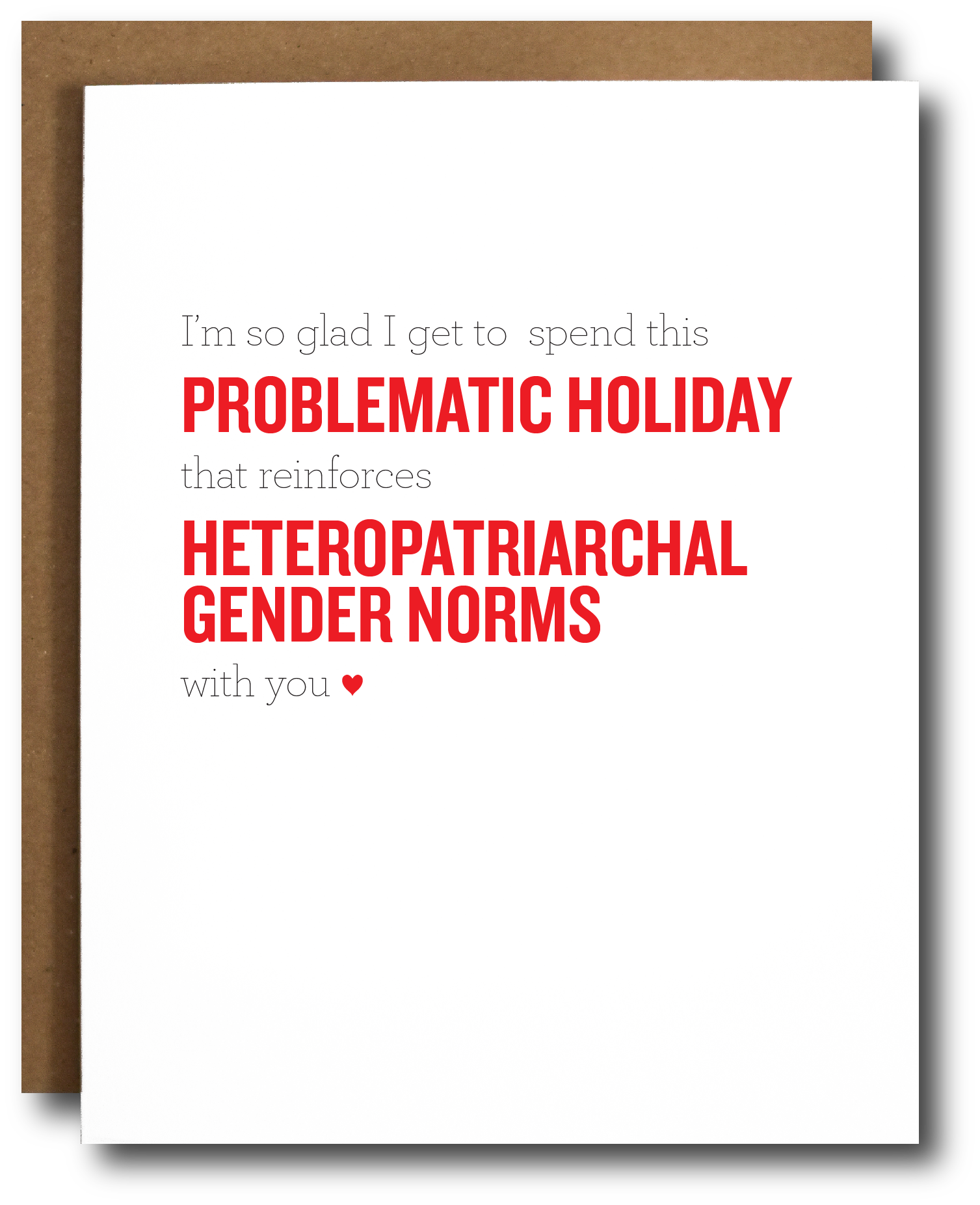 Choosing the 'Problematic Holiday' card allows you to express your feelings in a way that resonates with your beliefs. It encourages open dialogue about the societal norms that often go unchallenged during romantic holidays. By gifting this card, you are not only sharing your love but also promoting awareness and understanding of the issues surrounding Valentine's Day.