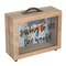 Save for your travels with this delightful suitcase-shaped money box. The fund box features a clear glass front with the text 'Saving to see the world' and the background of the box is a contemporary map print. The back of the box can easily be removed when it's time to take out the savings. Dimensions: H16cm x W18cm x D7cm; Material: MDF and Glass