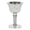 This silver metal chalice features a handcarved pentagram design and twisted vine accent along the stem. Symbolic of the goddess' womb, this shining goblet is perfect for holding wine during sacred rituals.