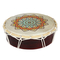 Play a rhythmic beat with this leather and wood shamanic drum with patterned center, ethically sourced and handmade in Bali. 22cm diameter.