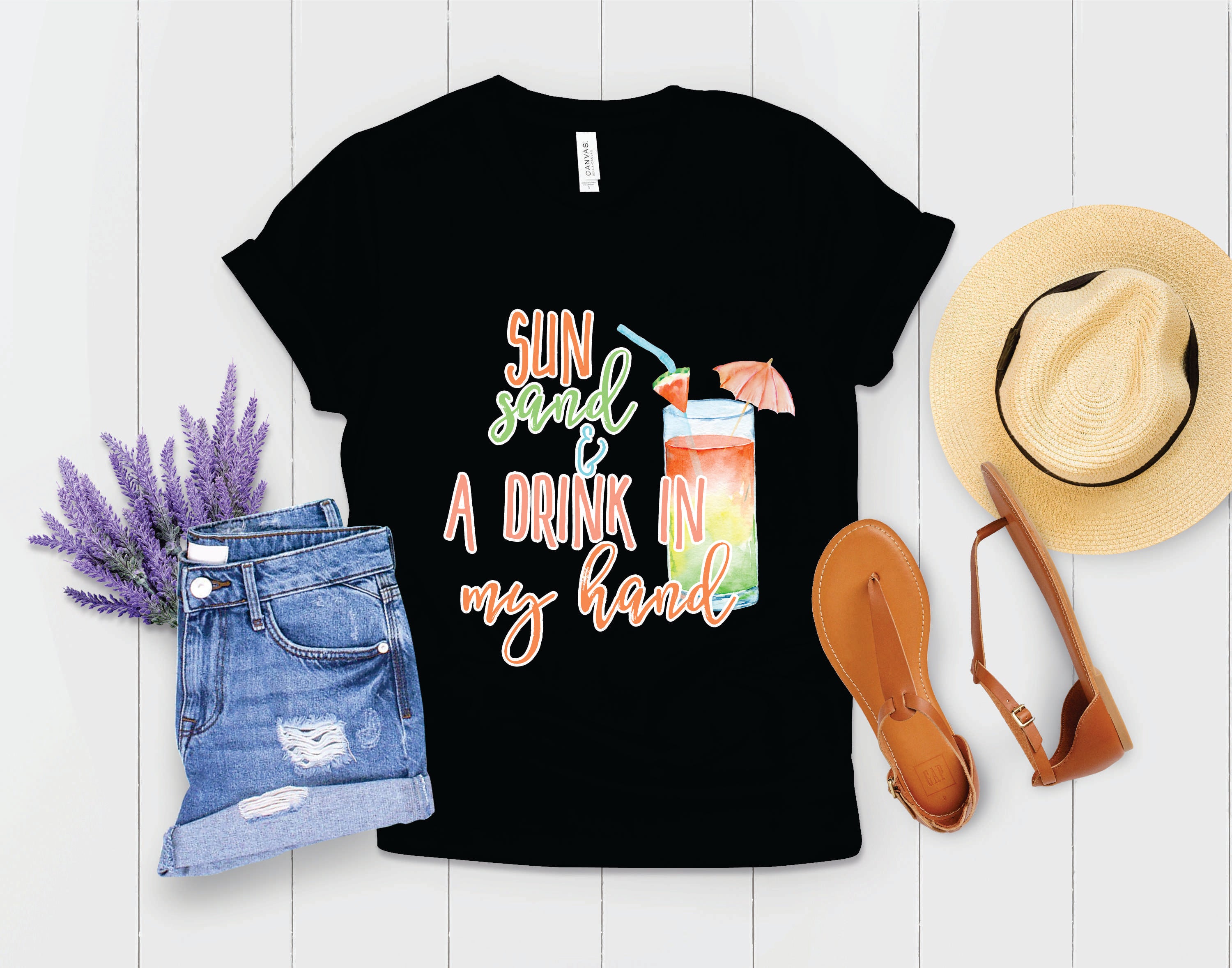 Choosing the Sun Sand and a Drink in my Hand graphic tee means embracing a lifestyle of relaxation and fun. It's not just a piece of clothing; it's a statement that reflects your love for summer and all the joys it brings. Wear it to beach parties, barbecues, or casual outings with friends, and let everyone know that you're ready to soak up the sun!